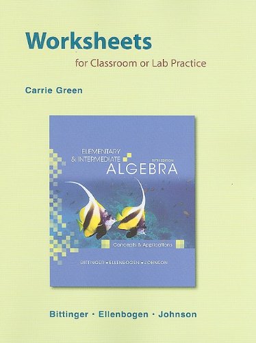 Worksheets for Classroom or Lab Practice for Elementary and Intermediate Algebra: Concepts and Applications, by Marvin L. Bittinger, David iBooks