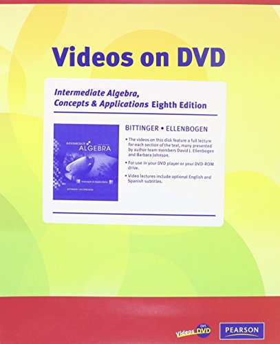 Videos on DVD for Intermediate Algebra: Concepts and Applications, by Marvin L. Bittinger, David J. Ellenbogen rtf